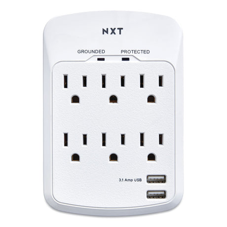 NXT Technologies Wall-Mount Surge Protector, 6 AC Outlets/2 USB Ports, 1,200 J, White (24324334)